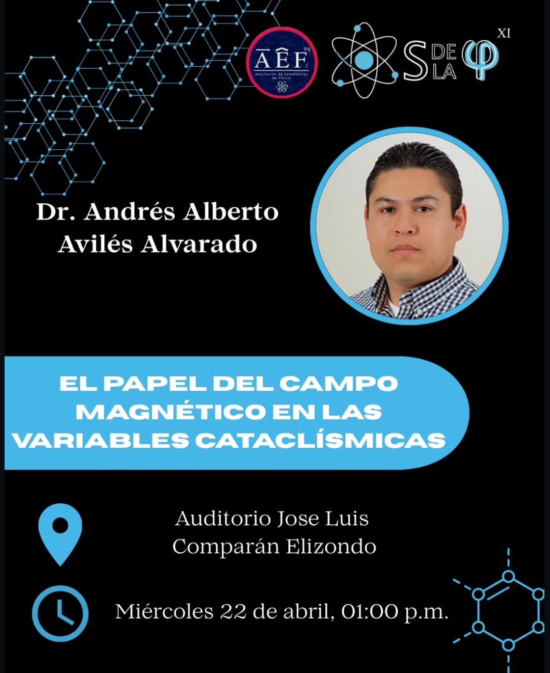 La Facultad de Ciencias Físico Matemáticas de la Universidad Autónoma de Nuevo León, en colaboración con la AEF, invita a participar en la Semana de la Física asistiendo a la conferencia “El papel del campo magnético en las variables cataclísmicas”, impartida por el doctor Andrés Alberto Avilés Alvarado. En esta charla se abordará el estudio de la influencia del campo magnético en sistemas binarios de variables cataclísmicas y su impacto en la dinámica de acreción.