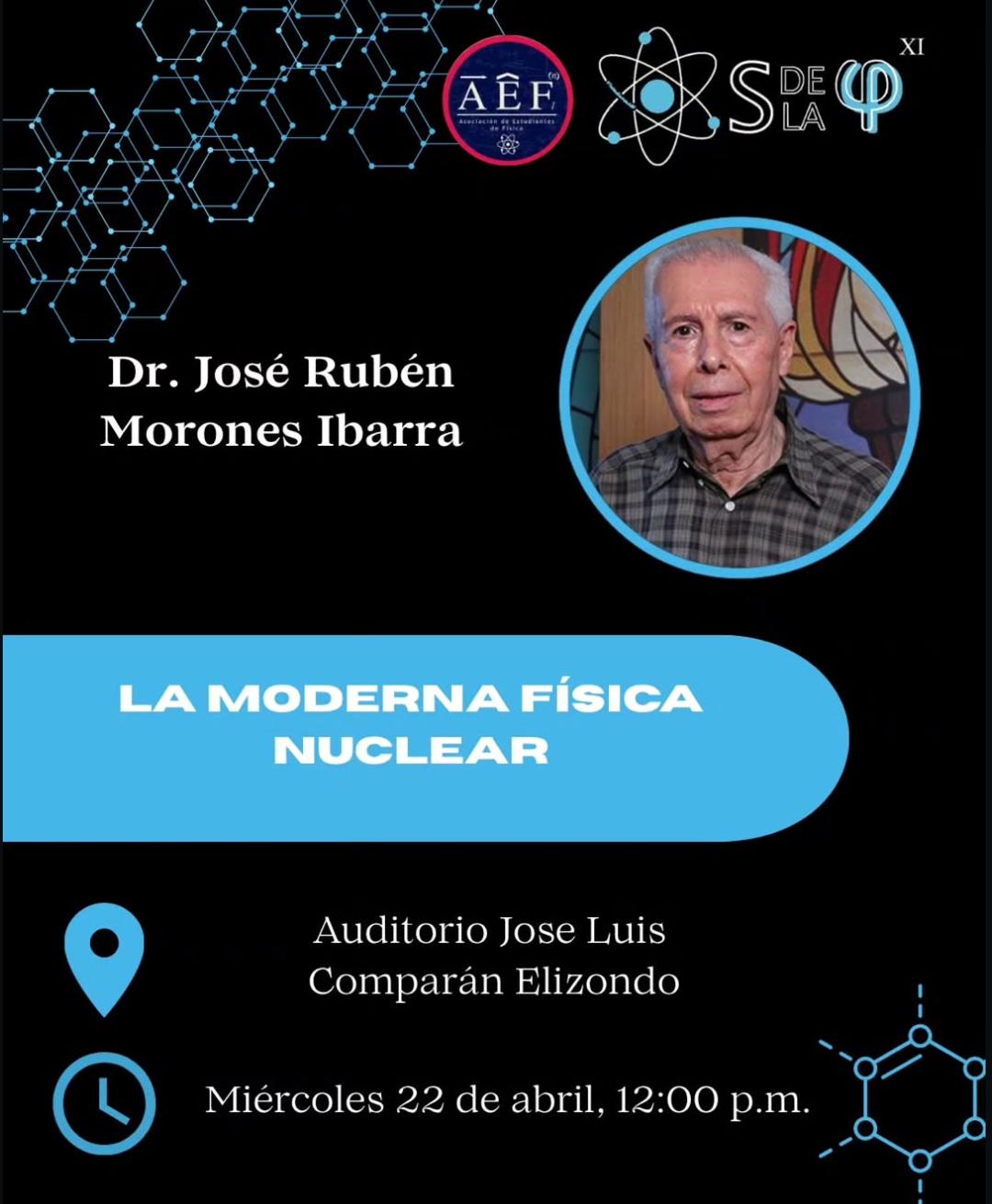 La Facultad de Ciencias Físico Matemáticas de la Universidad Autónoma de Nuevo León, en colaboración con la AEF, invita a participar en la Semana de la Física asistiendo a la conferencia “La Moderna Física Nuclear”, impartida por el doctor José Rubén Morones Ibarra. En esta charla se ofrecerá una introducción a los avances recientes en física nuclear, así como a sus fundamentos y aplicaciones en la ciencia y la tecnología.